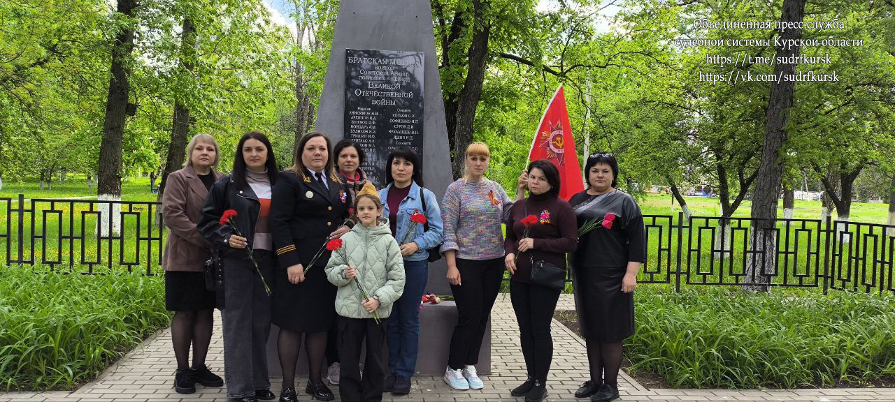 В День 80-летия Победы в Великой Отечественной войне 1941-1945 гг.- 9 мая 2025 года- председатель Тимского районного суда Курской области Плотникова Светлана Вячеславовна совместно с сотрудниками аппарата суда воздали дань памяти и уважения героям, павшим в боях за освобождение Родины. Служители Фемиды приняли участие в торжественном митинге, прошедшем у Алеи Славы в поселке Тим, и возложили цветы к Братской могиле воинов Советской Армии, павших на Тимской земле в годы Великой Отечественной войны. Минутой молчания почтили светлую память всех погибших, не вернувшихся с войны. Низкий поклон героям, всем участникам Великой Отечественной войны за то, что на передовой и в тылу приближали День Победы! Мы помним! Мы гордимся! Мы благодарим!